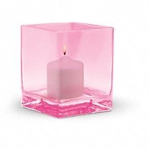 This sleek contemporary pink glass Cube from Teleflora's Flowers-in-a-Gift collection adds a dash of color and it's great for votive candles too!